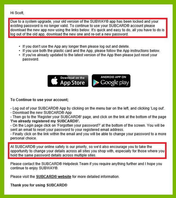 Can you please report all current app concerns and inquires to appfeedback@subway.com?